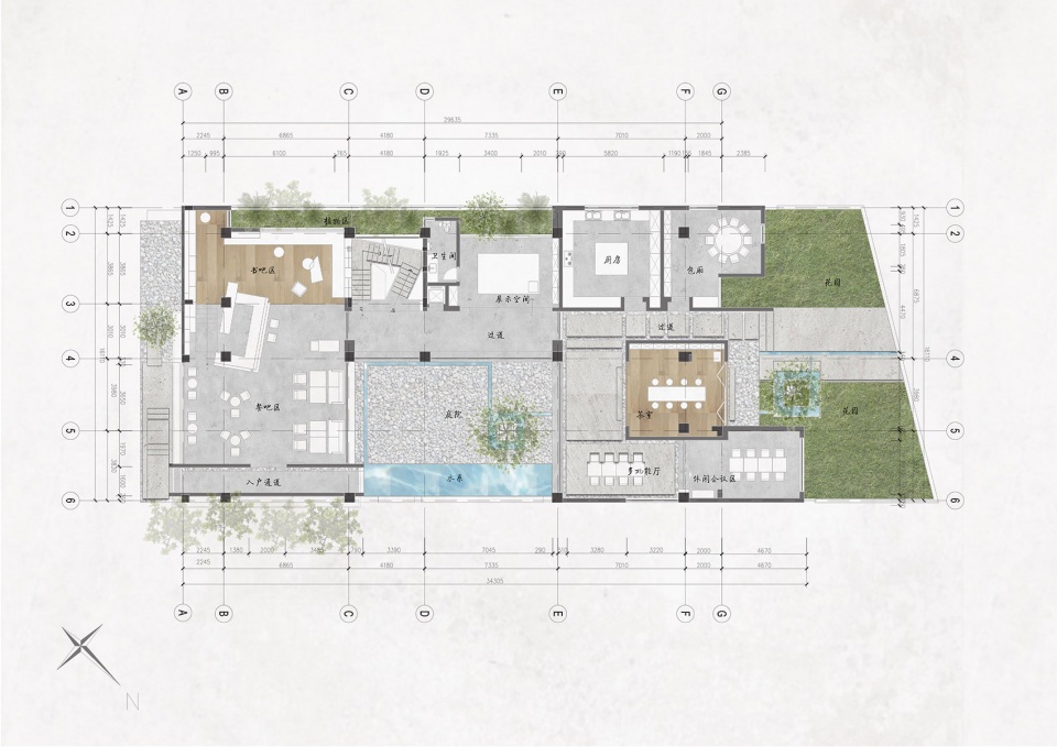 ”一水绕苍山,苍山抱古城“的概念始终贯穿着整个建筑,屋顶的水系一直流向庭院以及地下室,犹如融化的雪水滋养着这片土地。