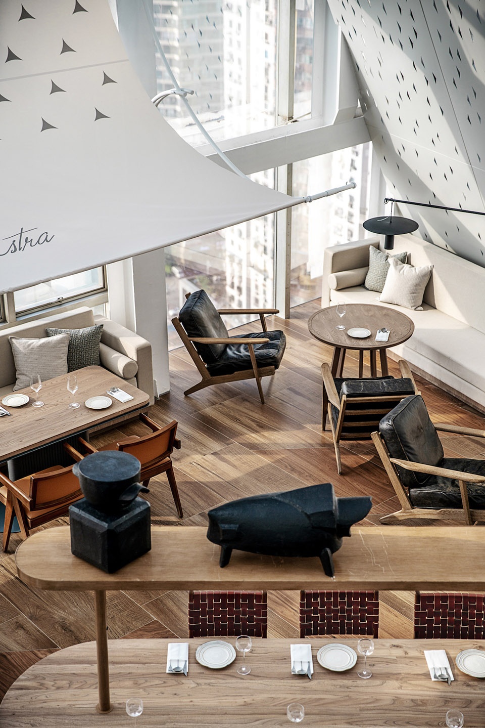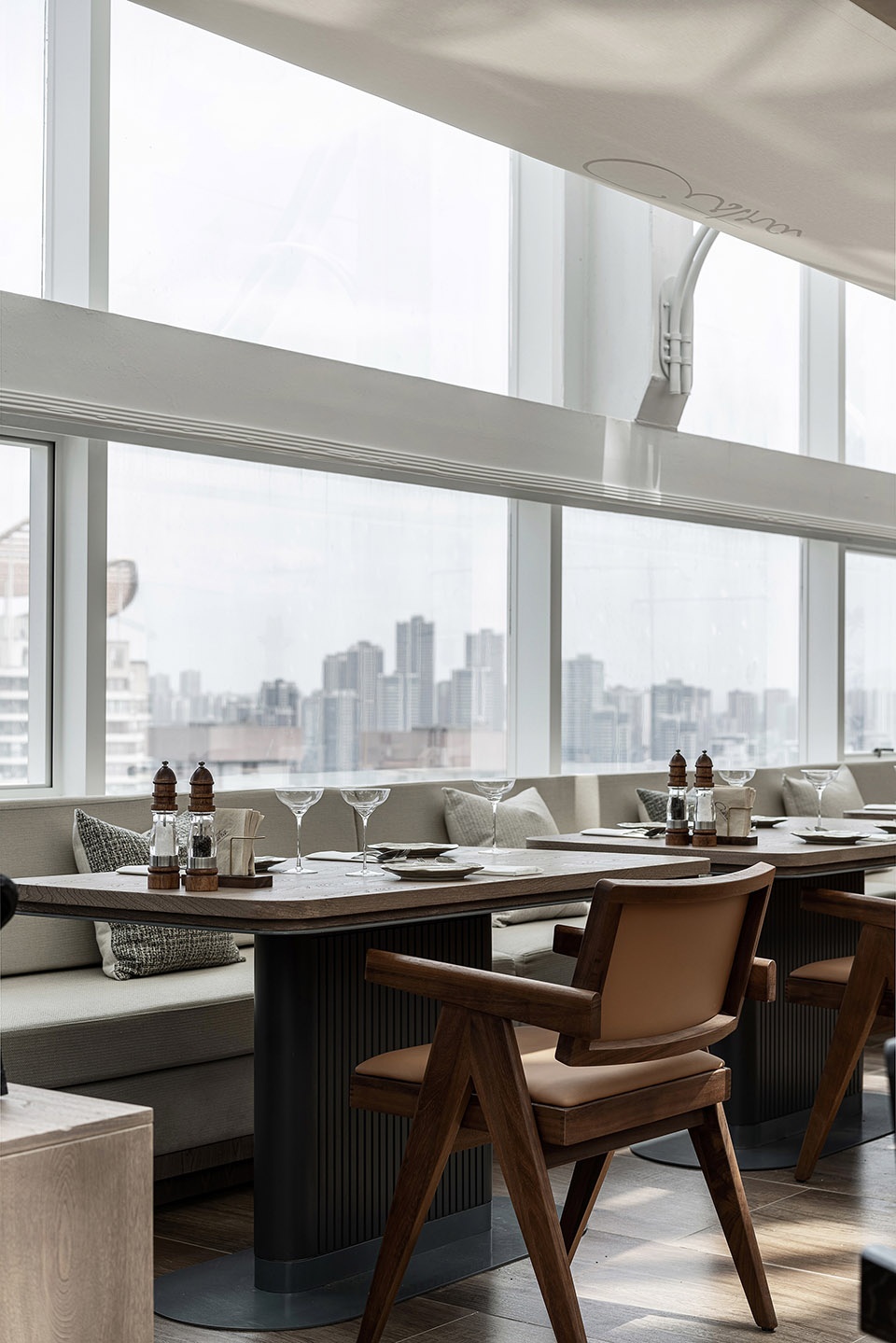 座席不算多,而姿态各异。吧台边、帷幔里、挑檐下、阁楼上,围坐、排座、独坐;俯可瞰两江市井、仰可望苍穹星辰、远眺可达都市天际。内心惬意,坐哪里都如意。