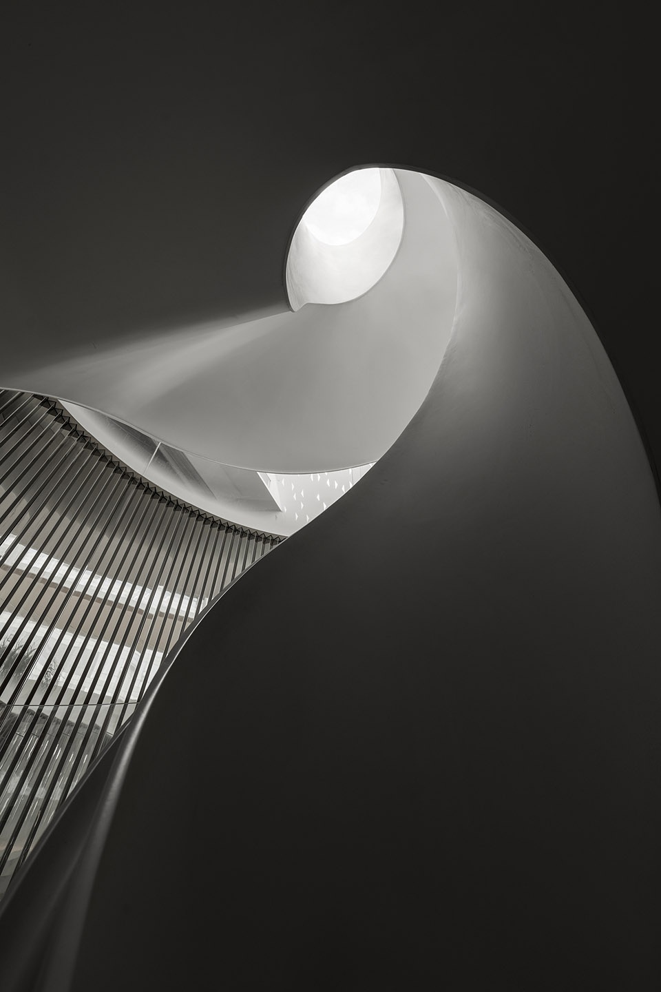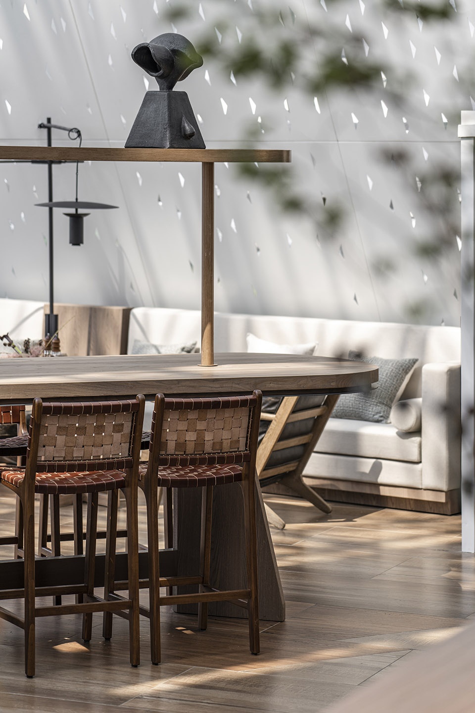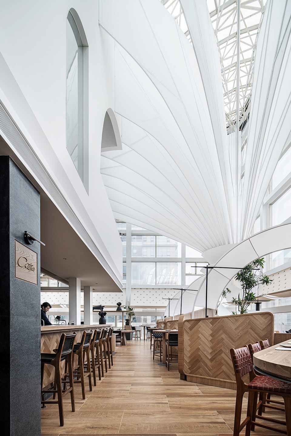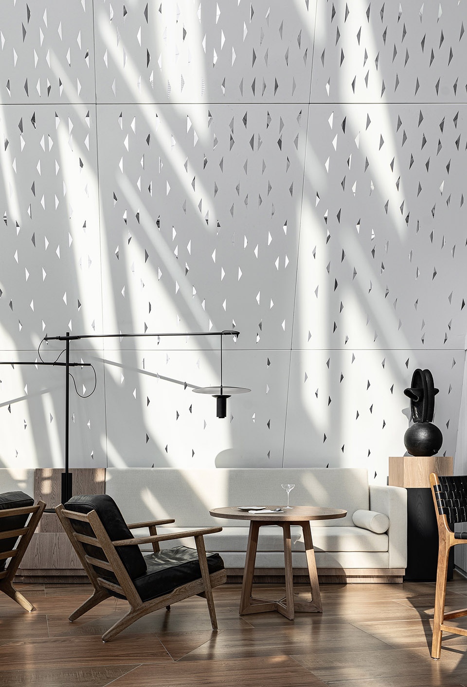 重庆的阳光是充满暴力色彩的,直接,火辣的穿透力,借助幕墙附膜隔热,“船帆”柔光,帷幔遮阳,绿植褪暑,冲孔板滤光…多重“滤镜”,重塑人与光的和睦。