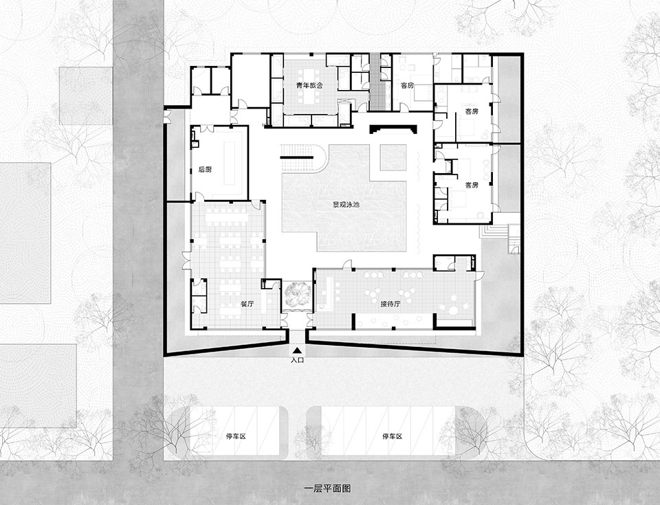 民宿酒店的设计过程旨在尝试以某种具象的概念为出发点生成整个设计的思路。希望通过这样生成的空间体验能回应「场地」与「建筑」、「材料」与「形式」、「内」与「外」的关系。