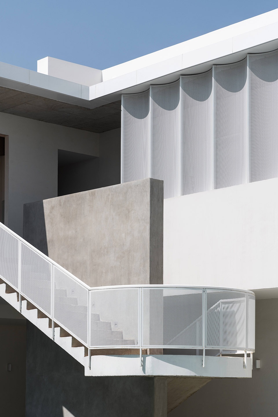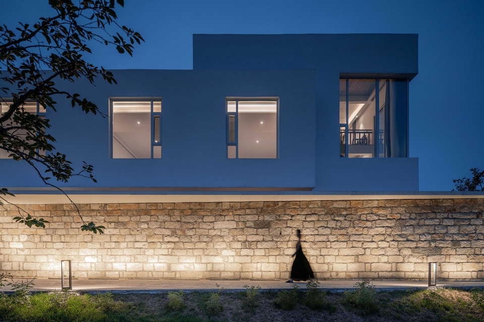建筑共计两层,上部体量以白色涂料为主,下部辅以当地特产花岗岩及局部点缀的红砖。