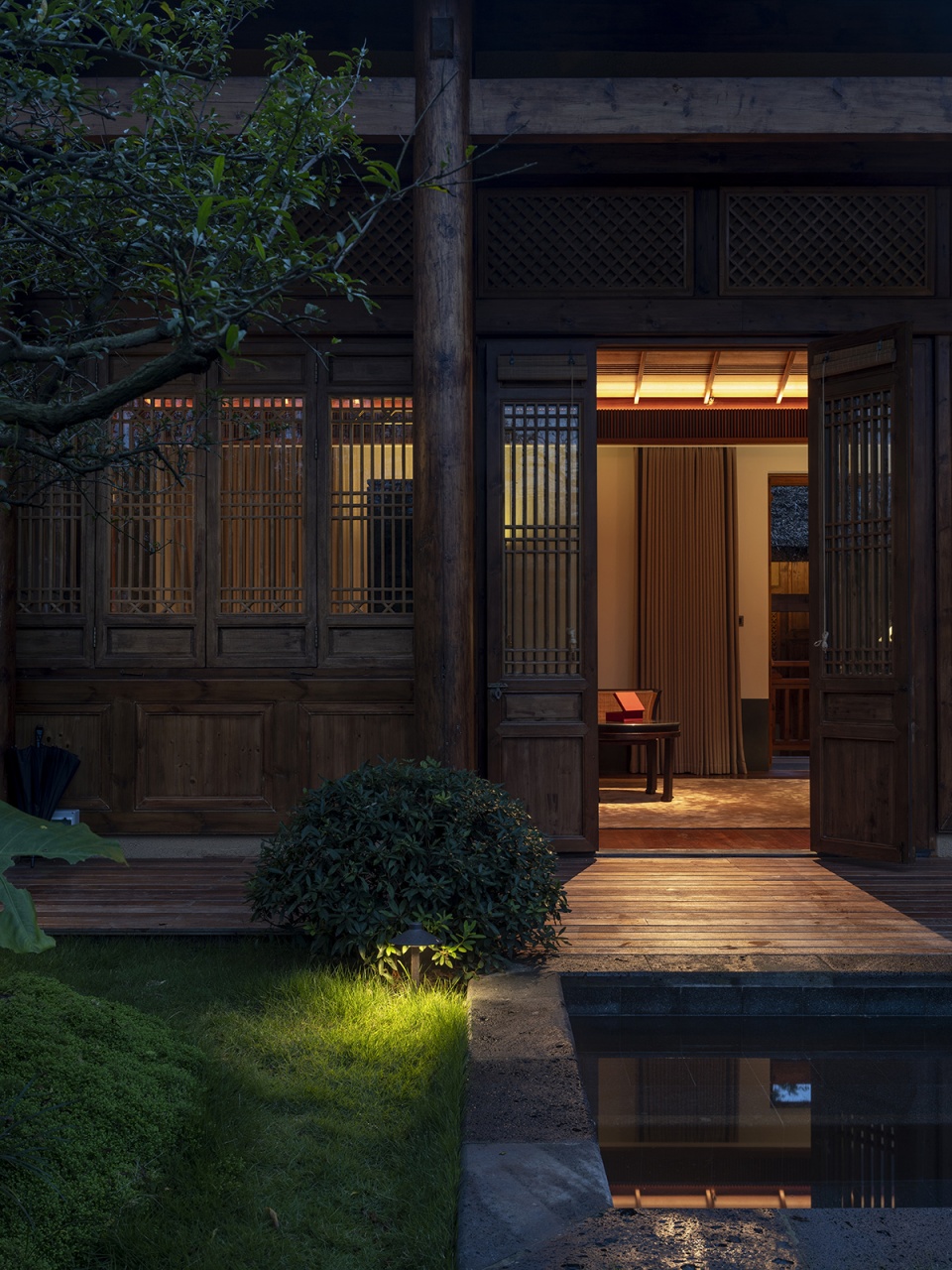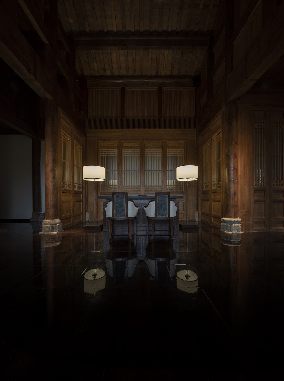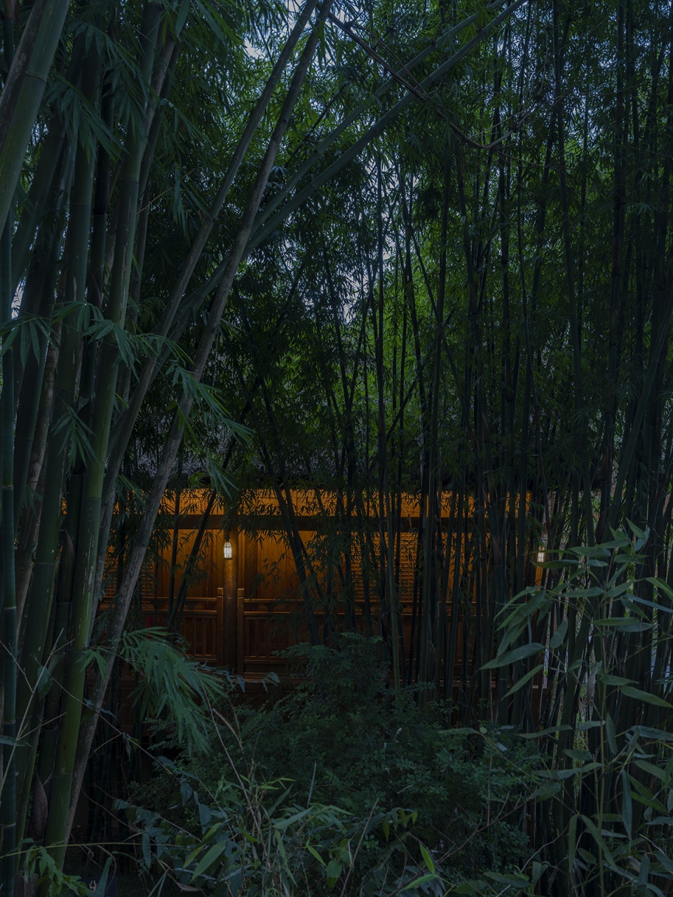宴会厅细密木制格栅之后的隐藏光线,透露出含蓄、朦胧的美感,也为朴素的川西风情中融入一丝别致与细腻。