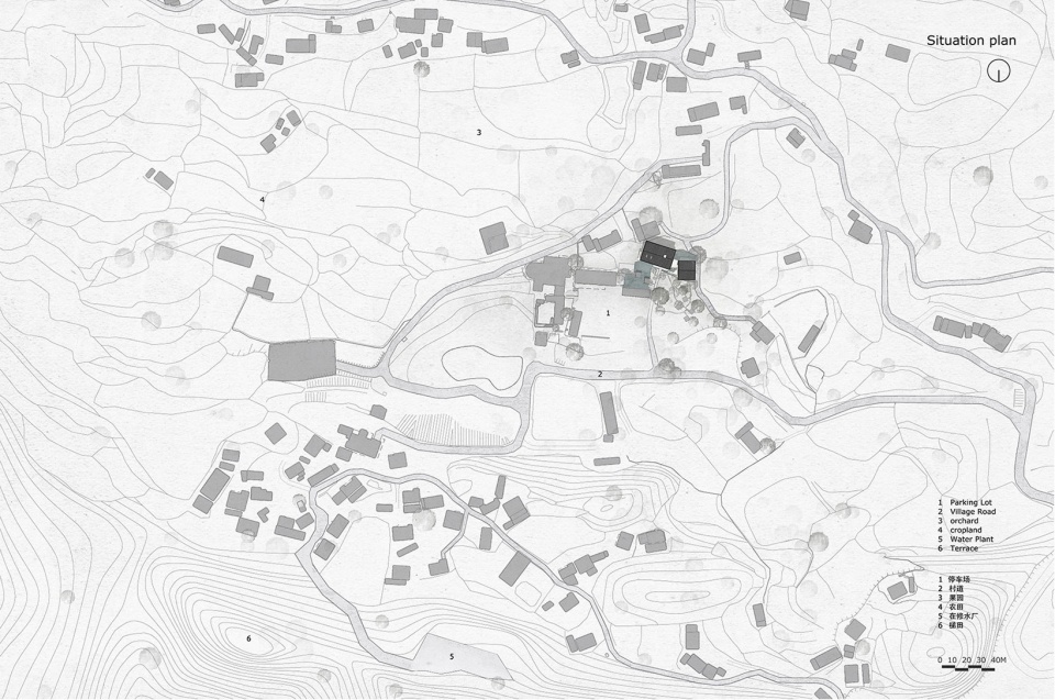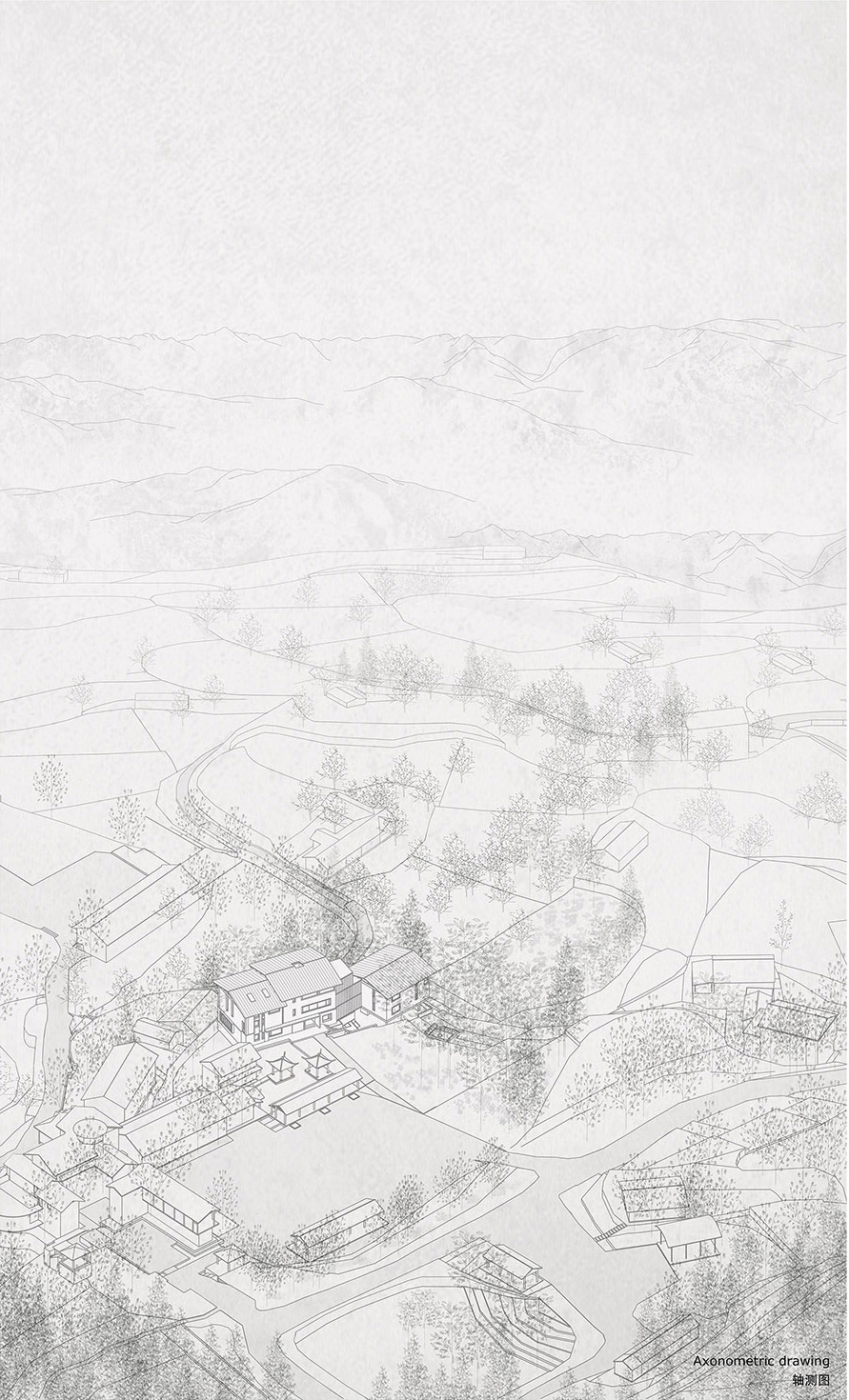 场地绝不只是场地本身,周围的树木、相邻的房舍、远处的山屏、一侧的田野、围合的竹林都是场地的一部分。人融入在其中,建筑的空间和视野也围绕其展开。