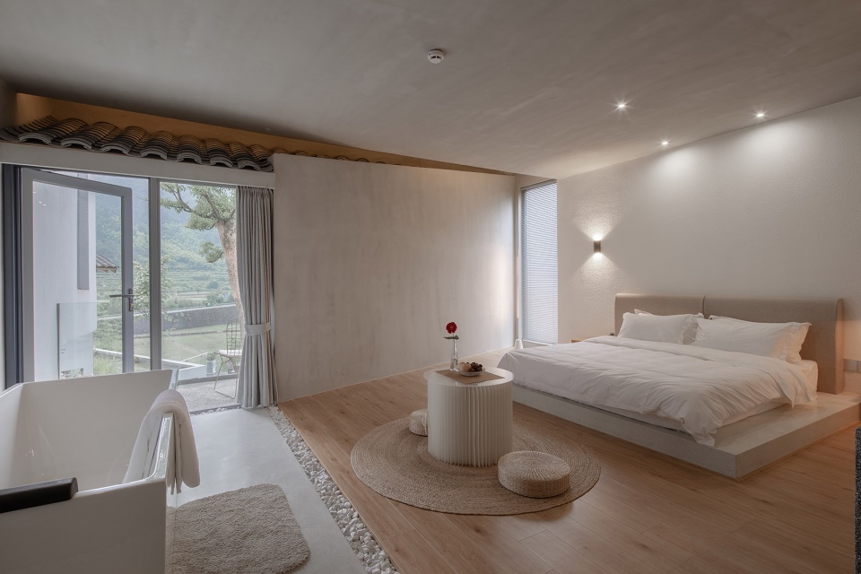民宿酒店已然建成数年,对于自然之物本身的模拟和转译是建筑师形式操作的最直接操作,但同时不免过于形式主义,除了单纯的形式表现,酒店建筑需要承载更加丰厚的艺术修养,才是内秀的建筑艺术。克制的形式,肆意的情绪是更加充沛的建筑表现。但至少,从形式出发,是建筑师的起点。