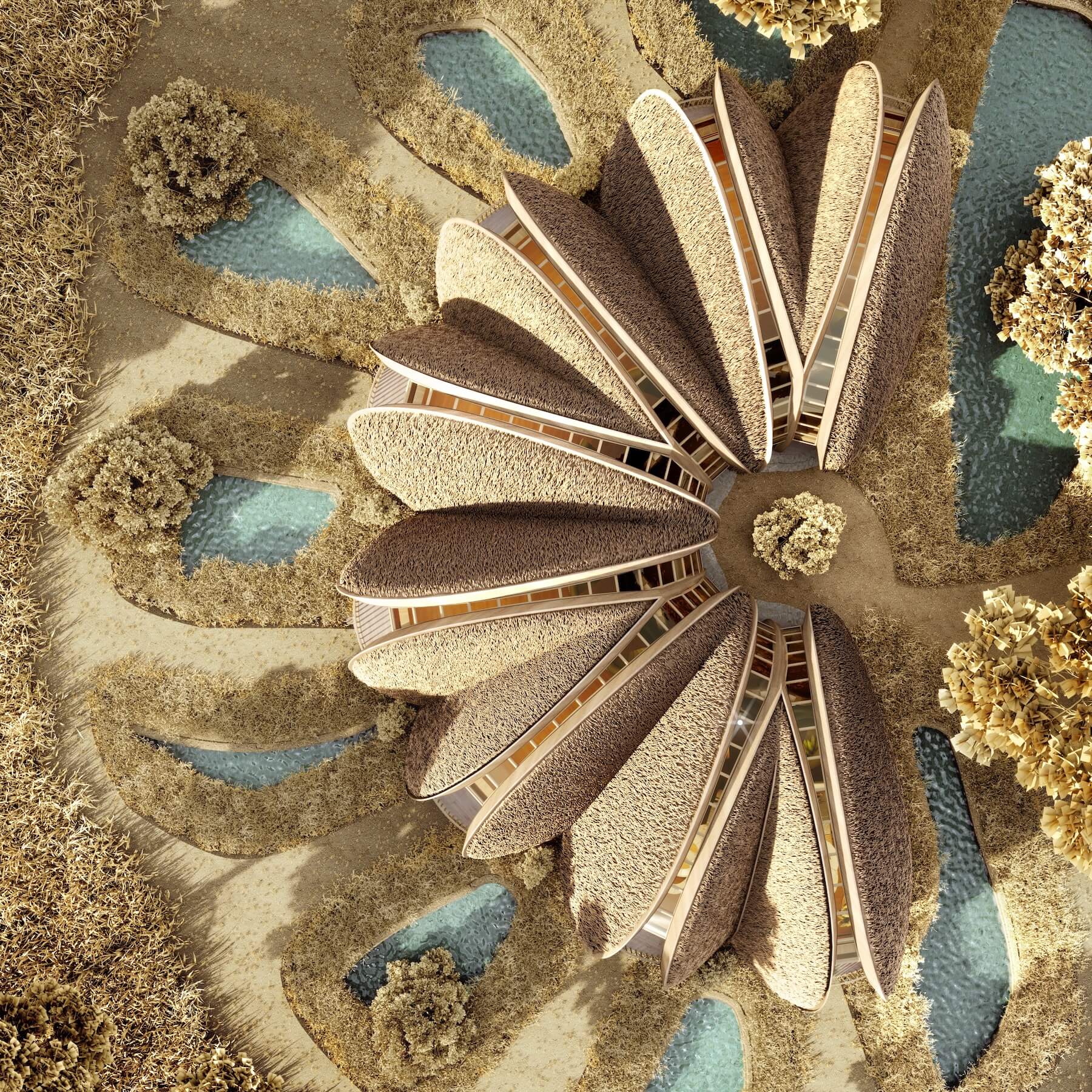 度假酒店设计方案的概念是从贻贝中借用来的,贻贝造型是该地区非常常见的软体动物。这座酒店主要由木材制成,无论是在结构的基础上还是在装饰上。酒店建筑的外观造型和材料与当地生态有机结合。让人过目不忘。计划于2022年春季完成建设。