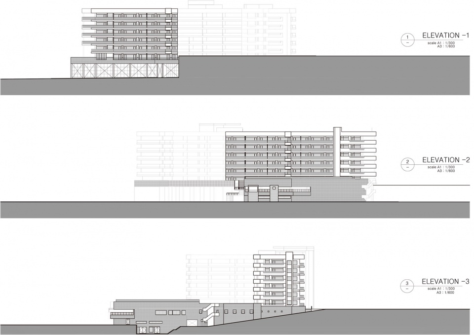 建筑布局舒展,向东西两翼延伸,且四面都向外部环境开放。因此,酒店中的任何一间客房都享有独特的景观视野。建筑的立面强调了楼板的水平线条,并设置了大面积的开窗,在最大程度上保证了建筑的开放性,平面的边缘空间得到了充分的利用,以阳台的形式增添了立面的丰富度。